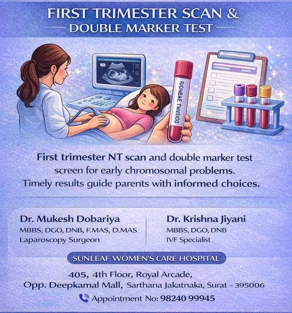 FIRST TRIMESTER SCAN & DOUBLE MARKER TEST (SUNLEAF WOMEN'S CARE HOPSITAL )